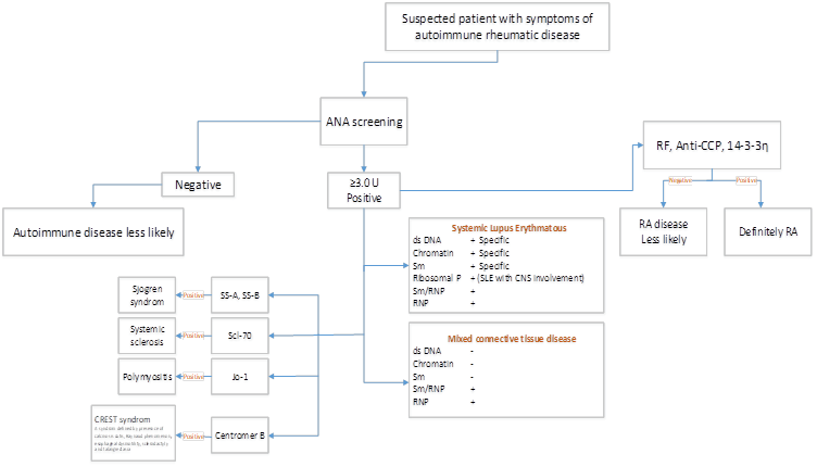 Antinuclear antibody (ANA) test – it’s an initial screen (not disease-specific); In patients with a positive ANA, more tests are performed for other antibodies that can confirm the diagnosis.